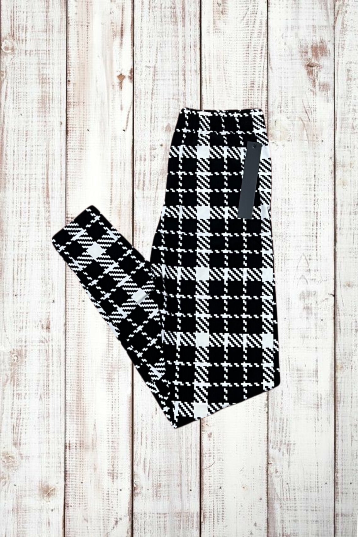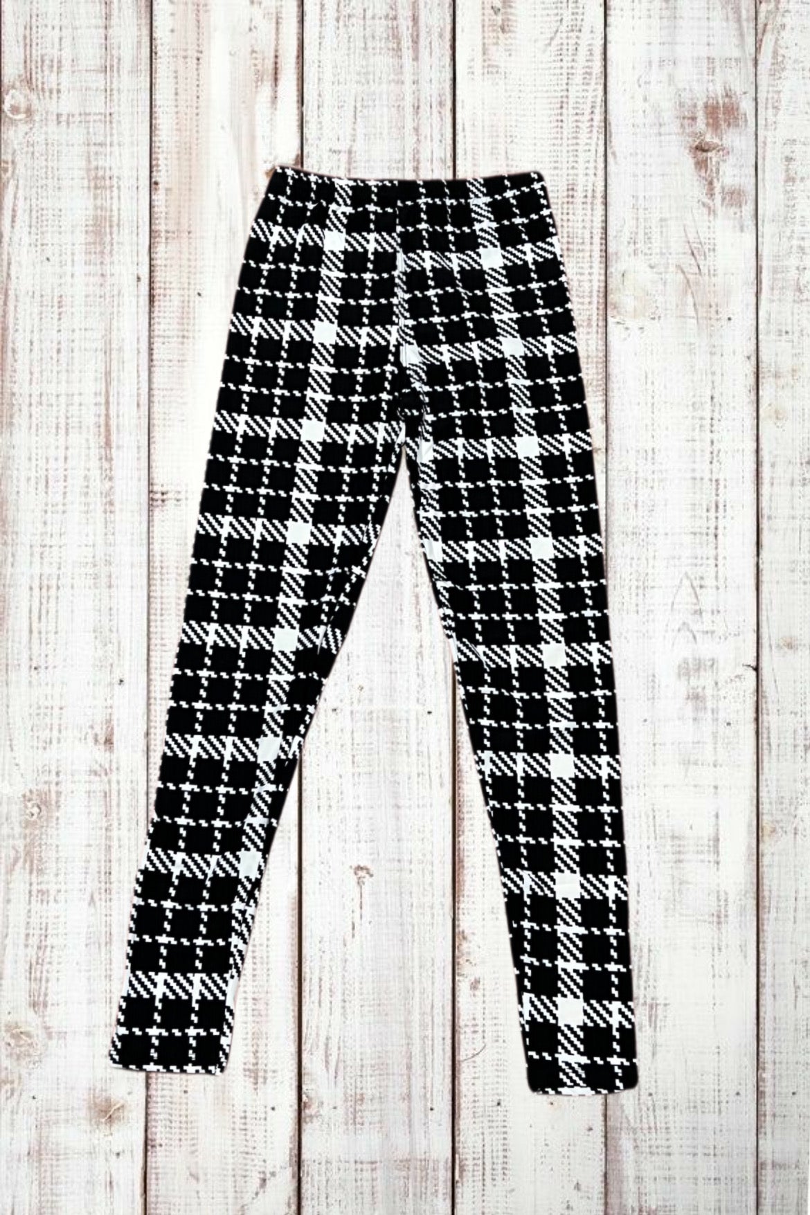 Buttery Soft Leggings - Houndstooth Plaid Black/White