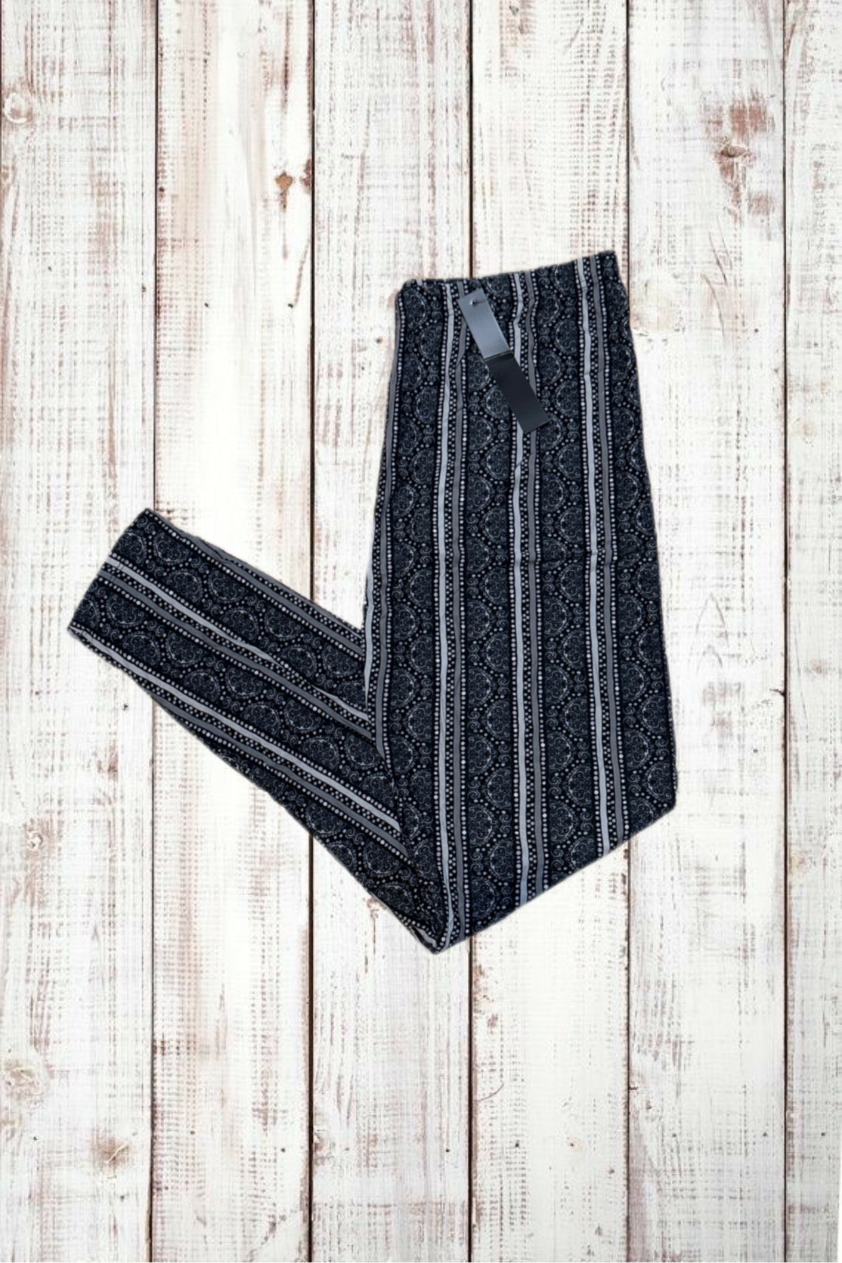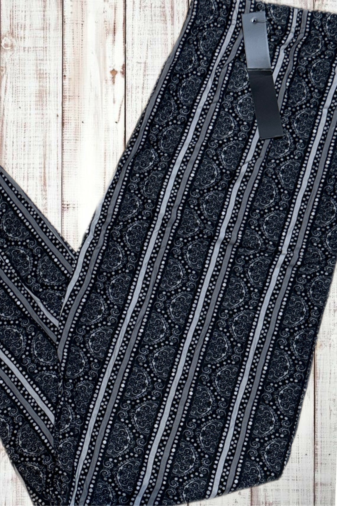 Buttery Soft Leggings - Black & Gray Abstract Stripes