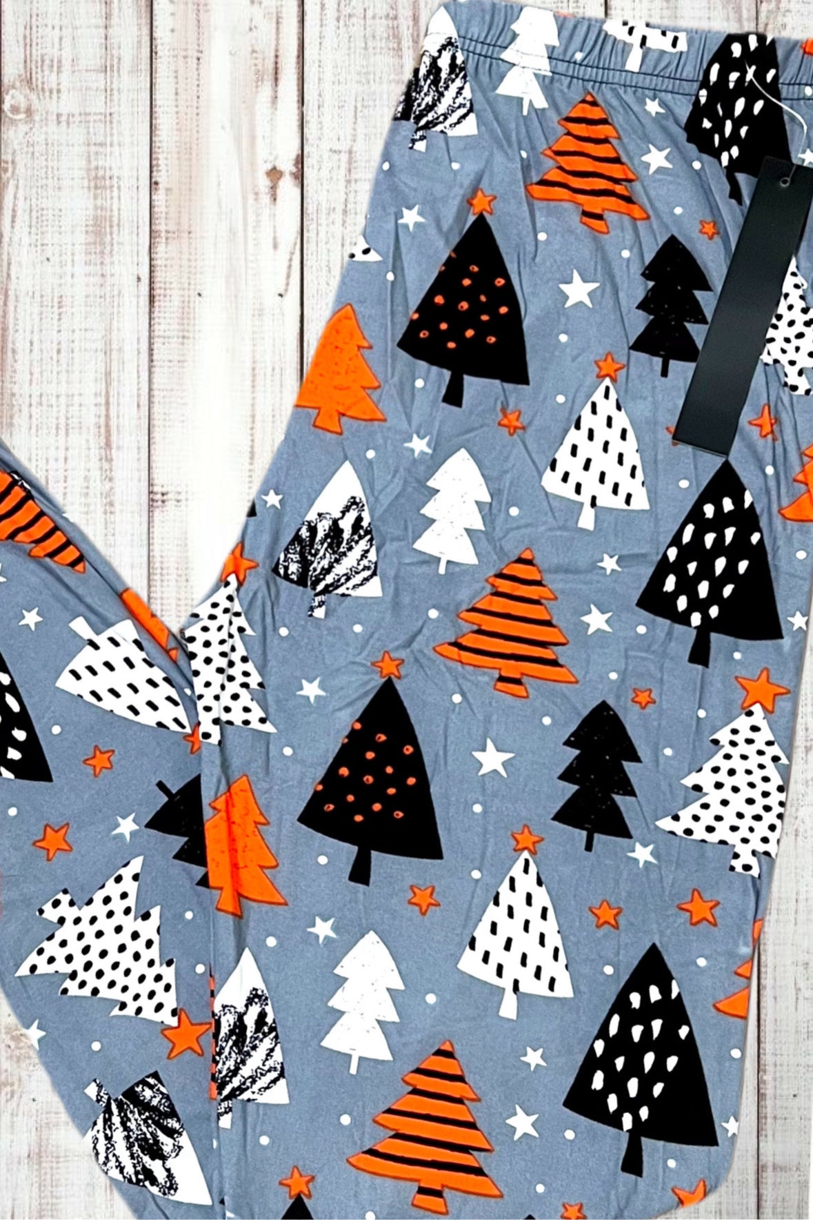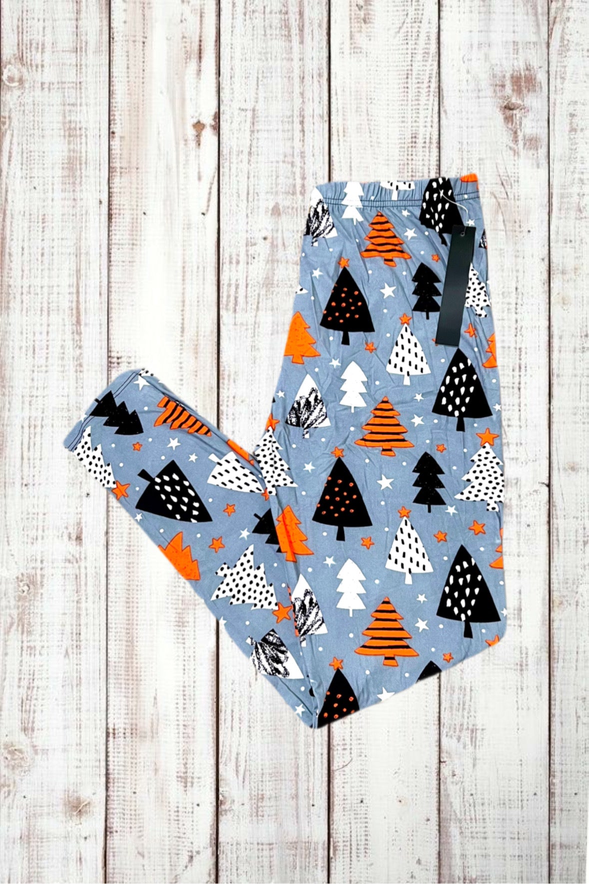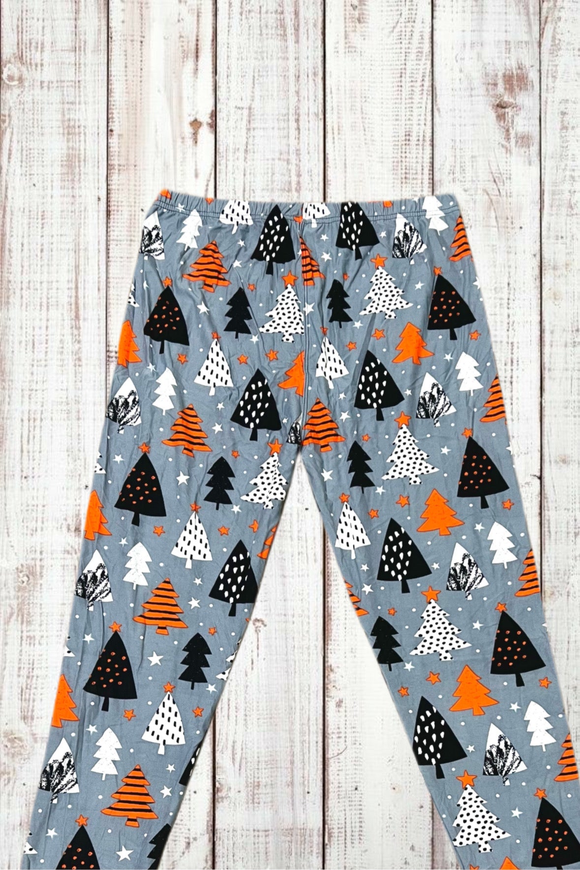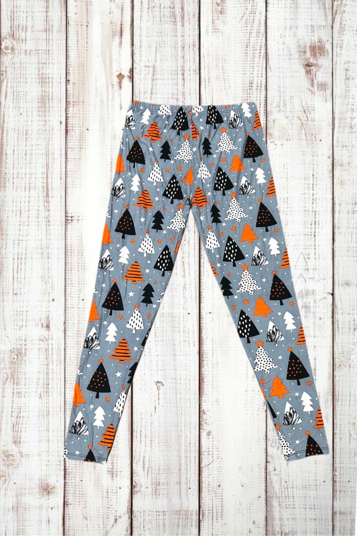 Buttery Soft Leggings - Christmas Trees on Gray