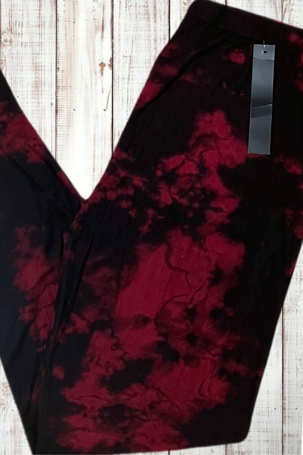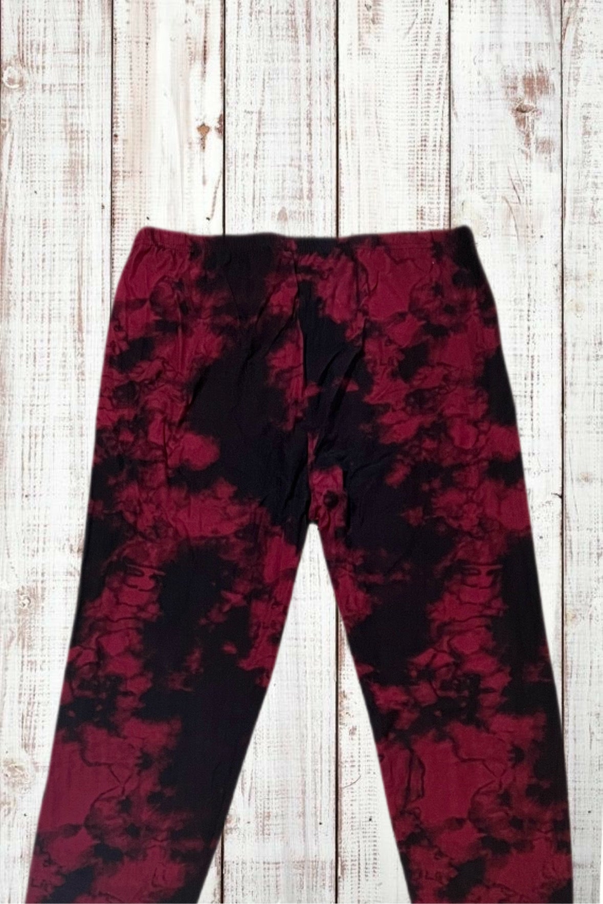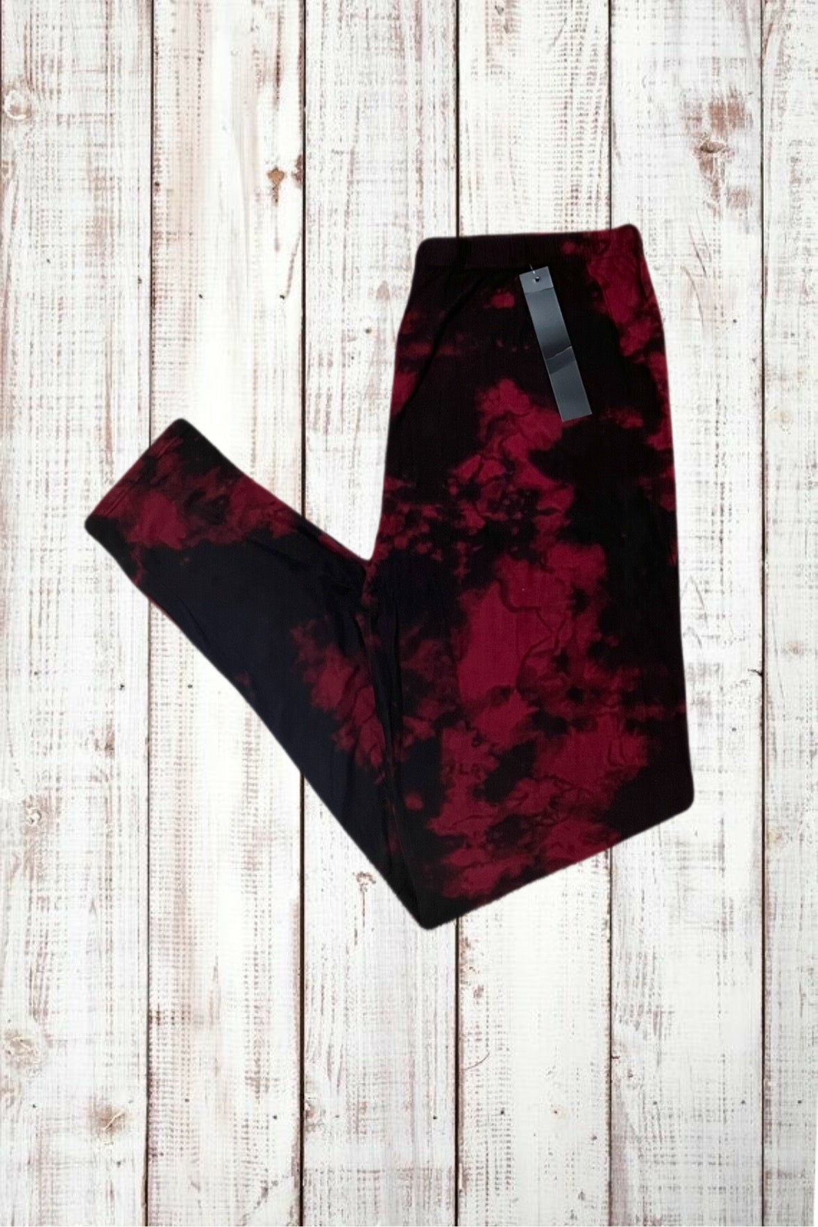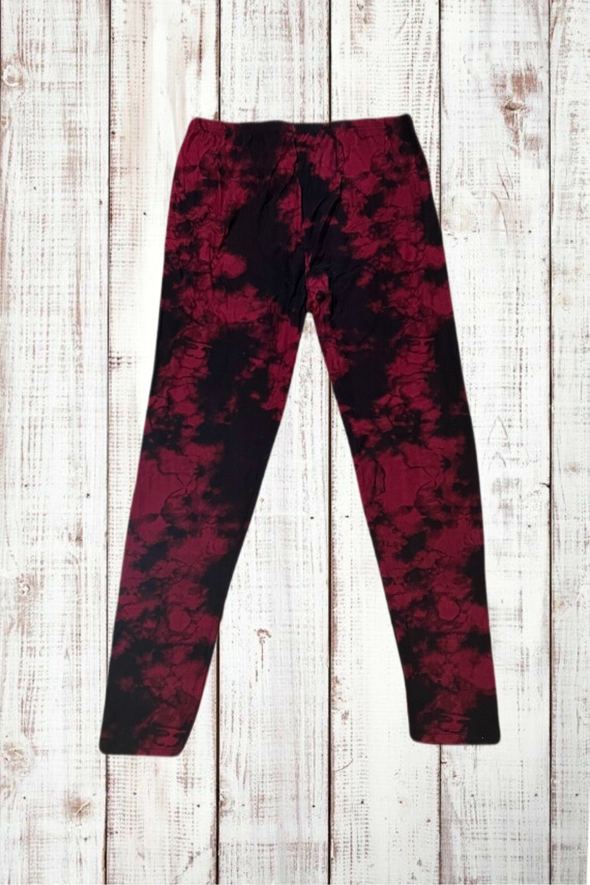 Buttery Soft Leggings - Dark Tie Dye Burgundy Red/Black