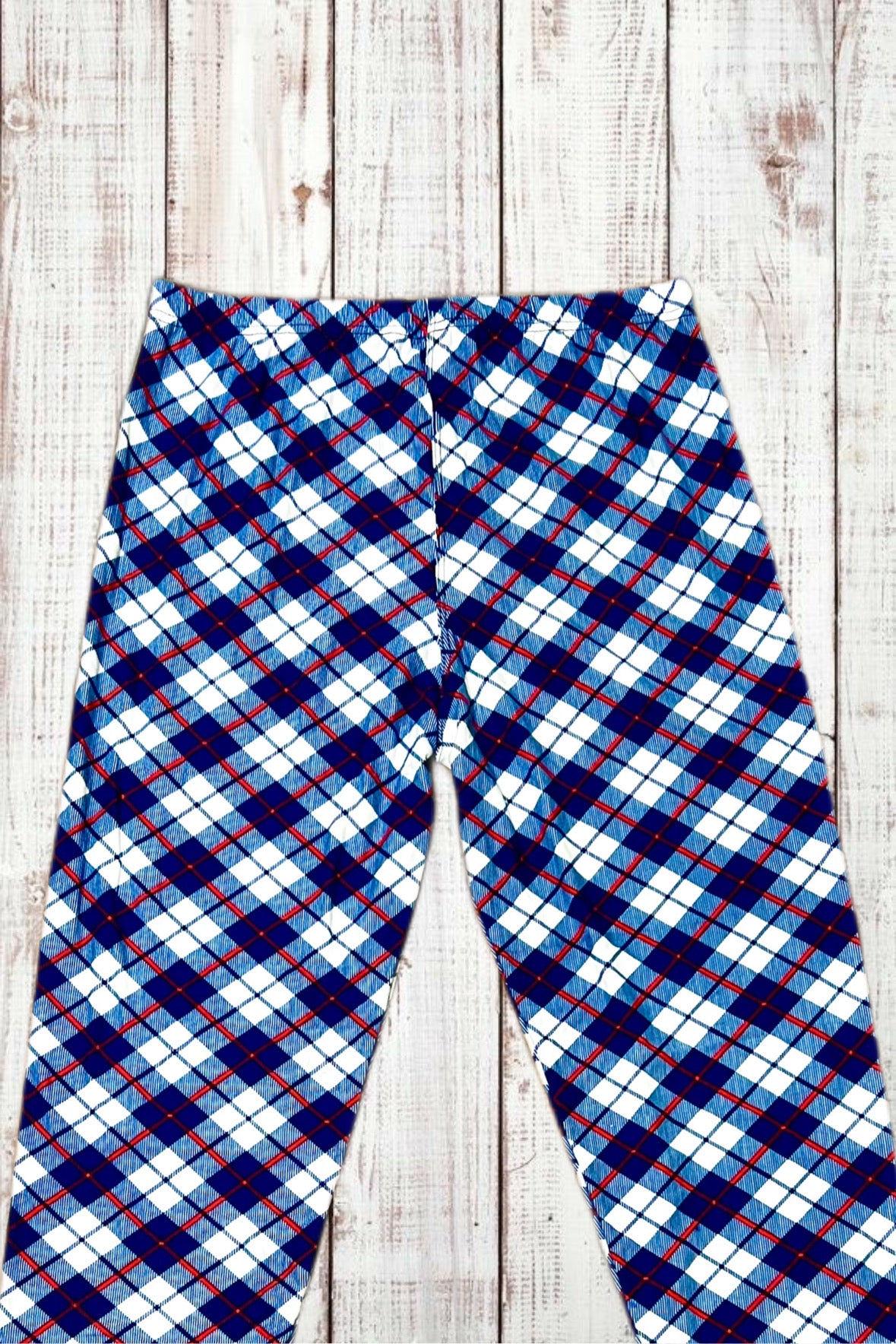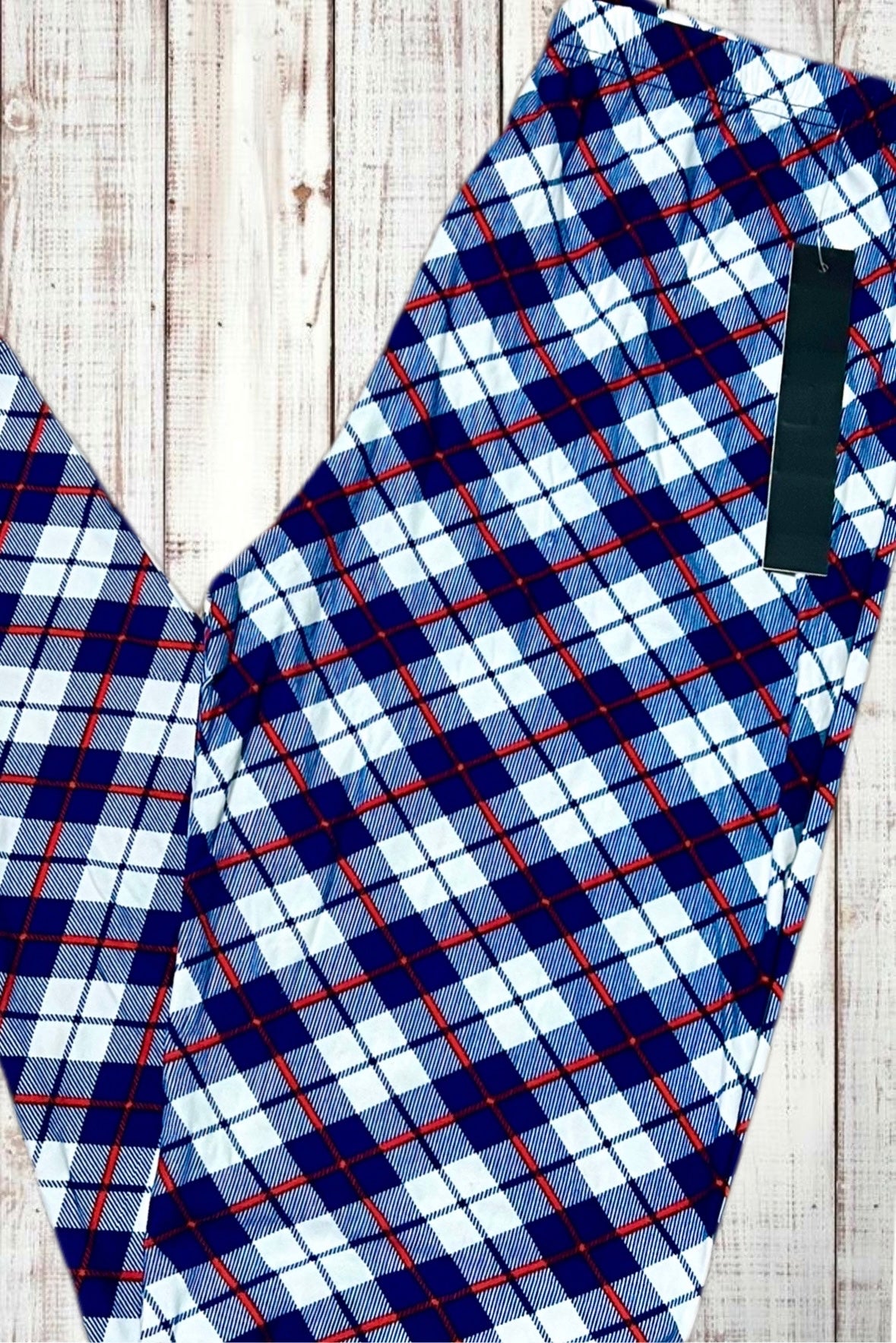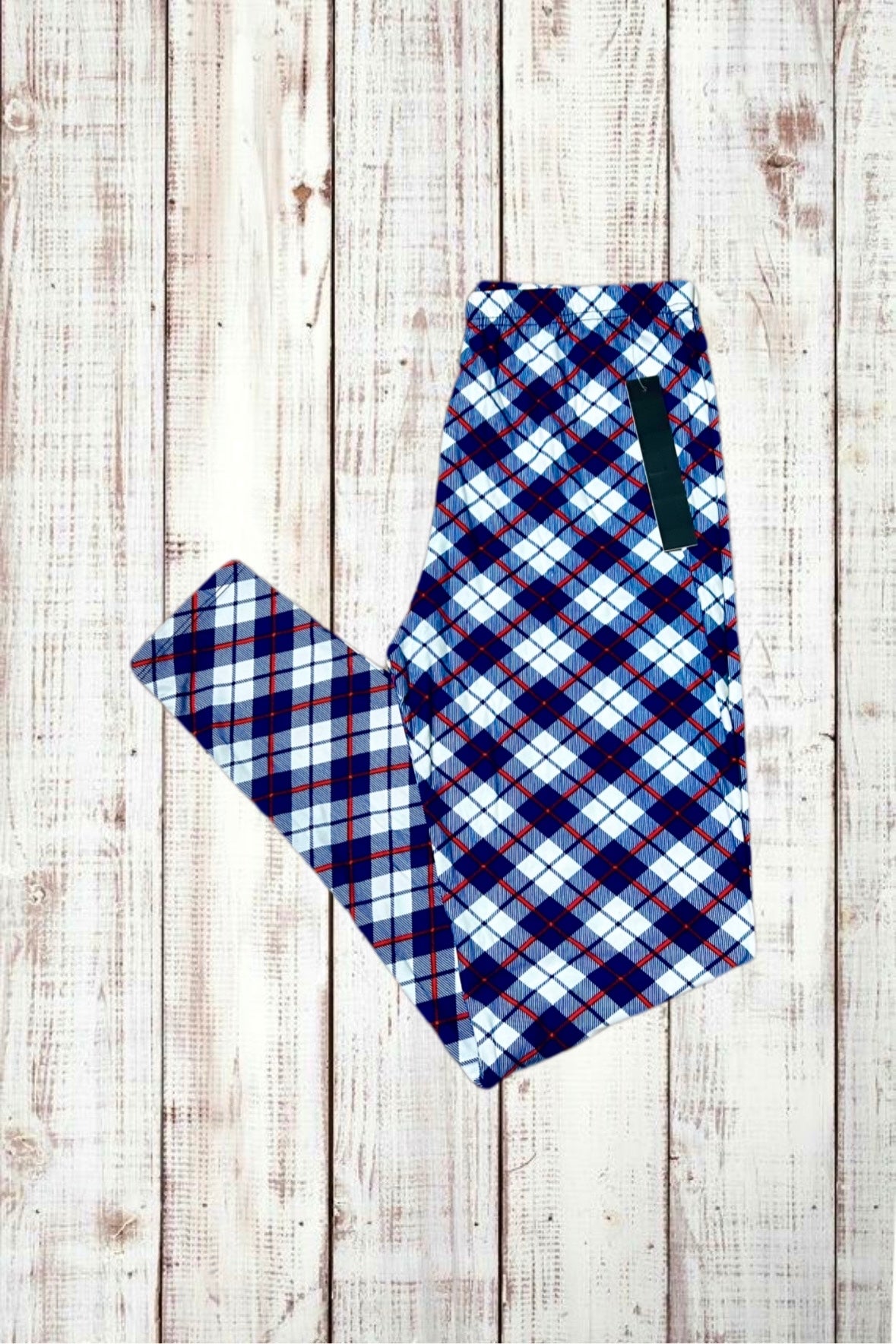 Buttery Soft Leggings - Diamond Plaid Blue/White