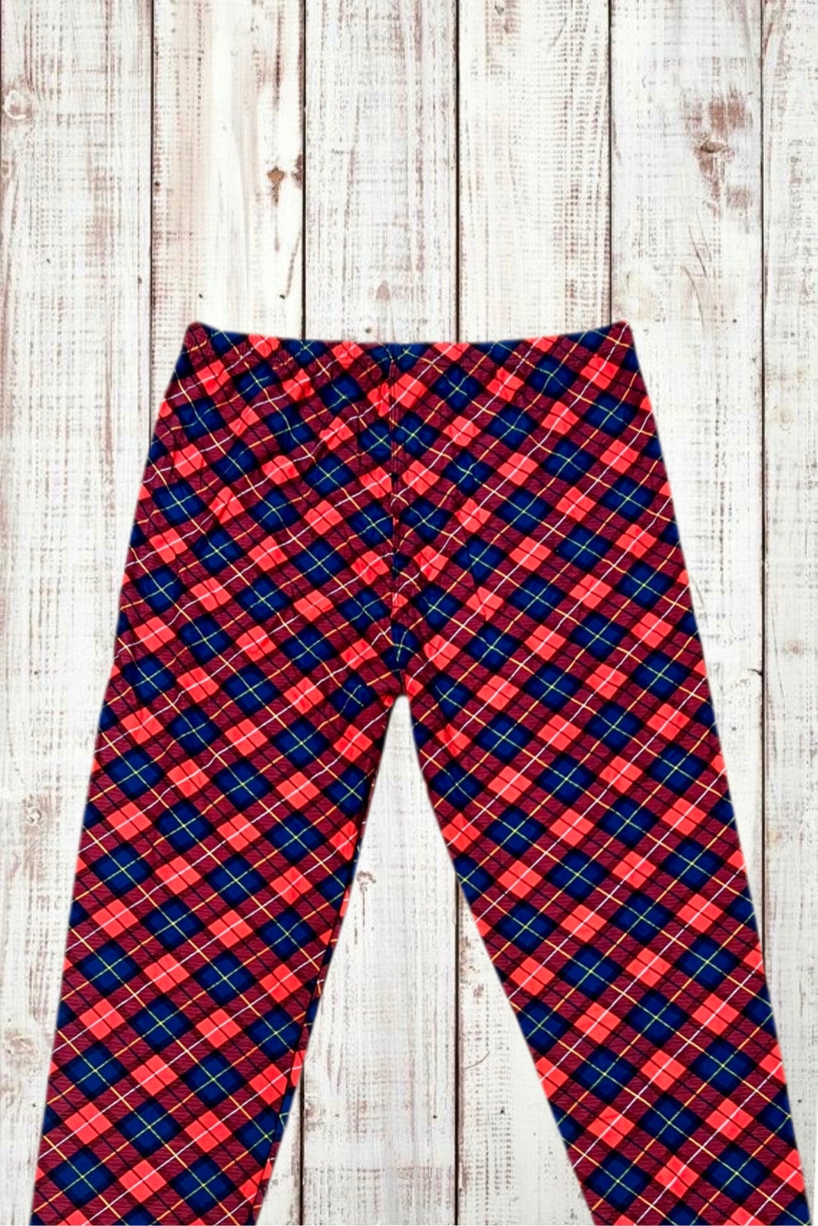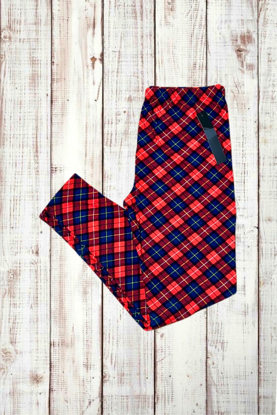 Buttery Soft Leggings - Diamond Plaid Red/Navy