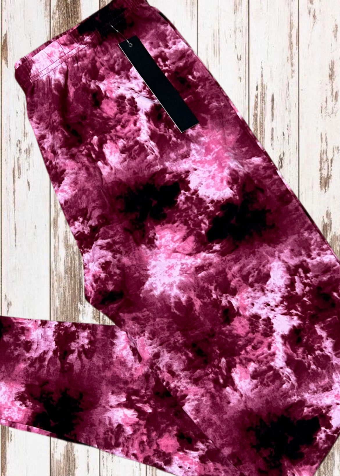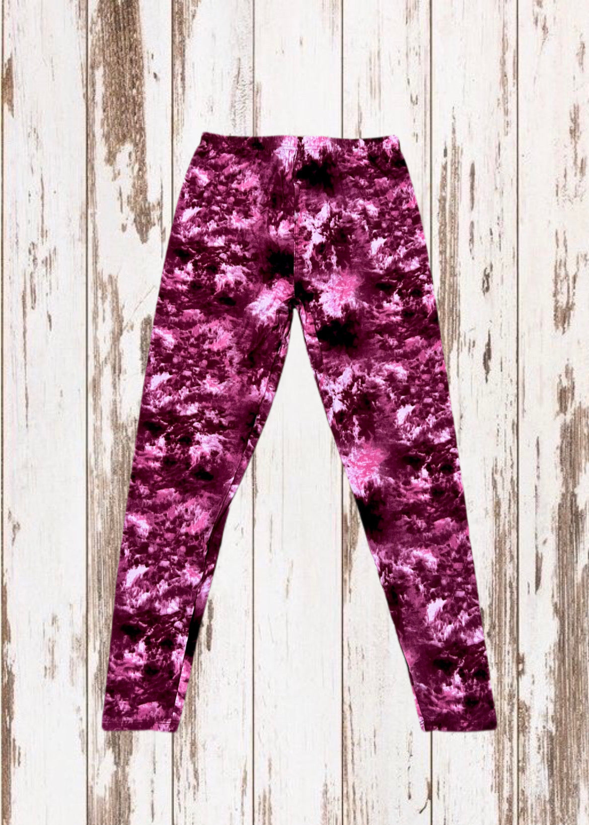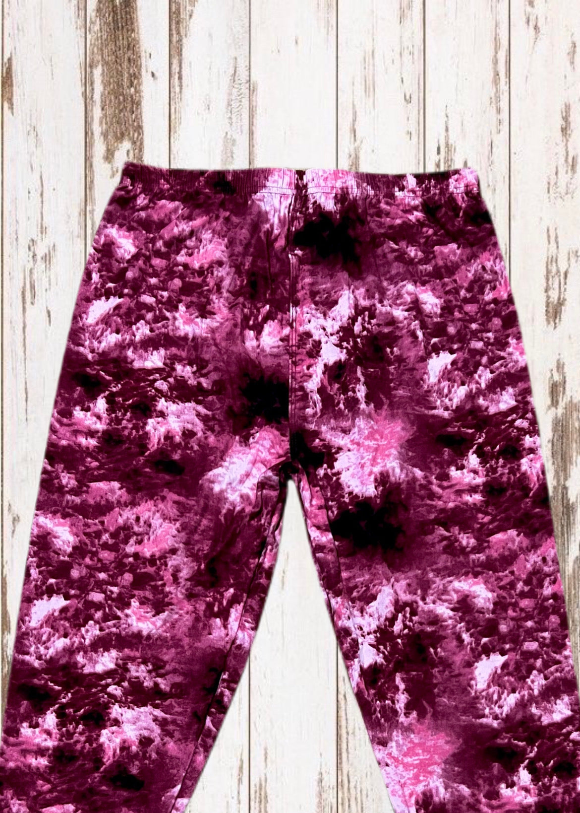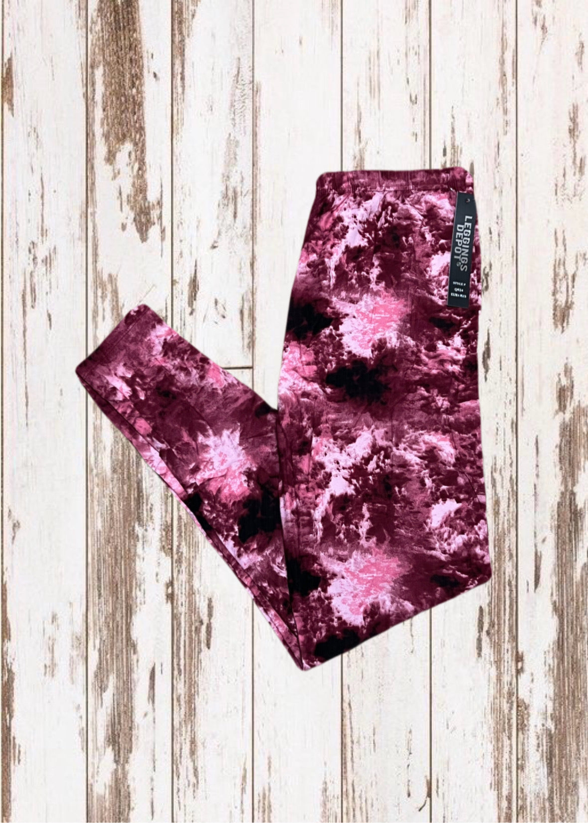 Buttery Soft Leggings - Fuchsia Pink & Burgundy Tie Dye