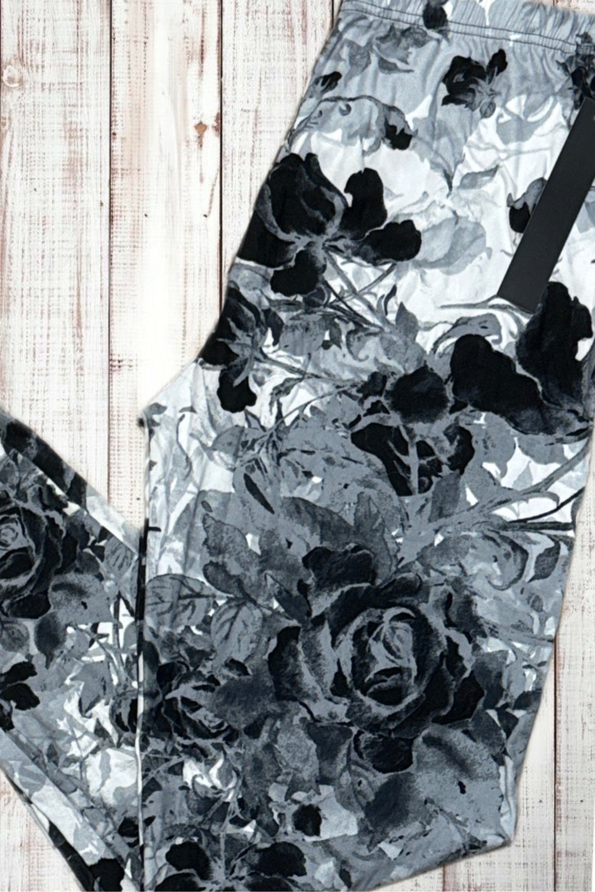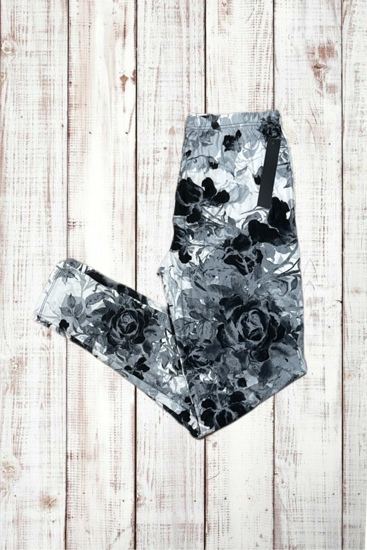 Buttery Soft Leggings - Gray Floral Roses