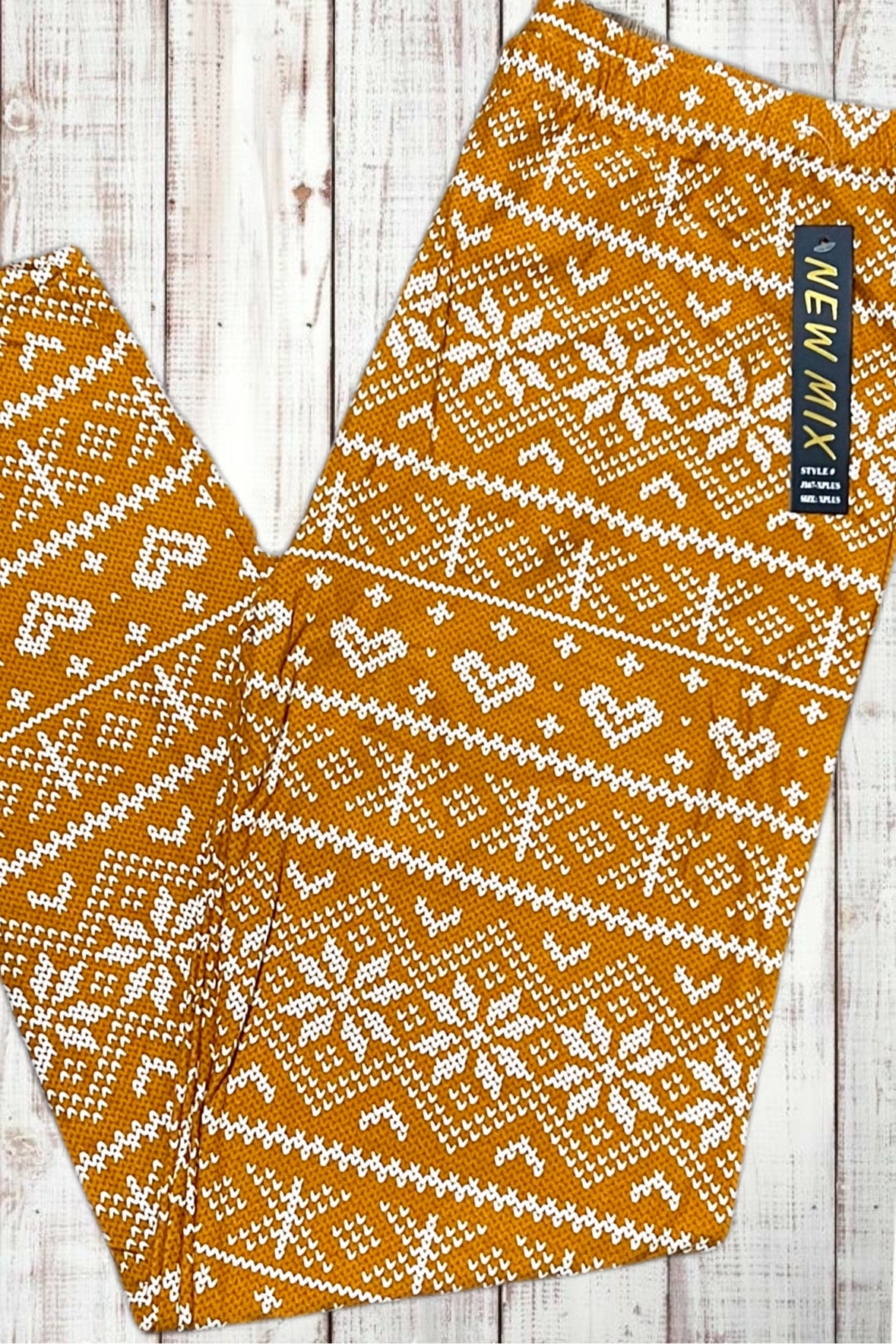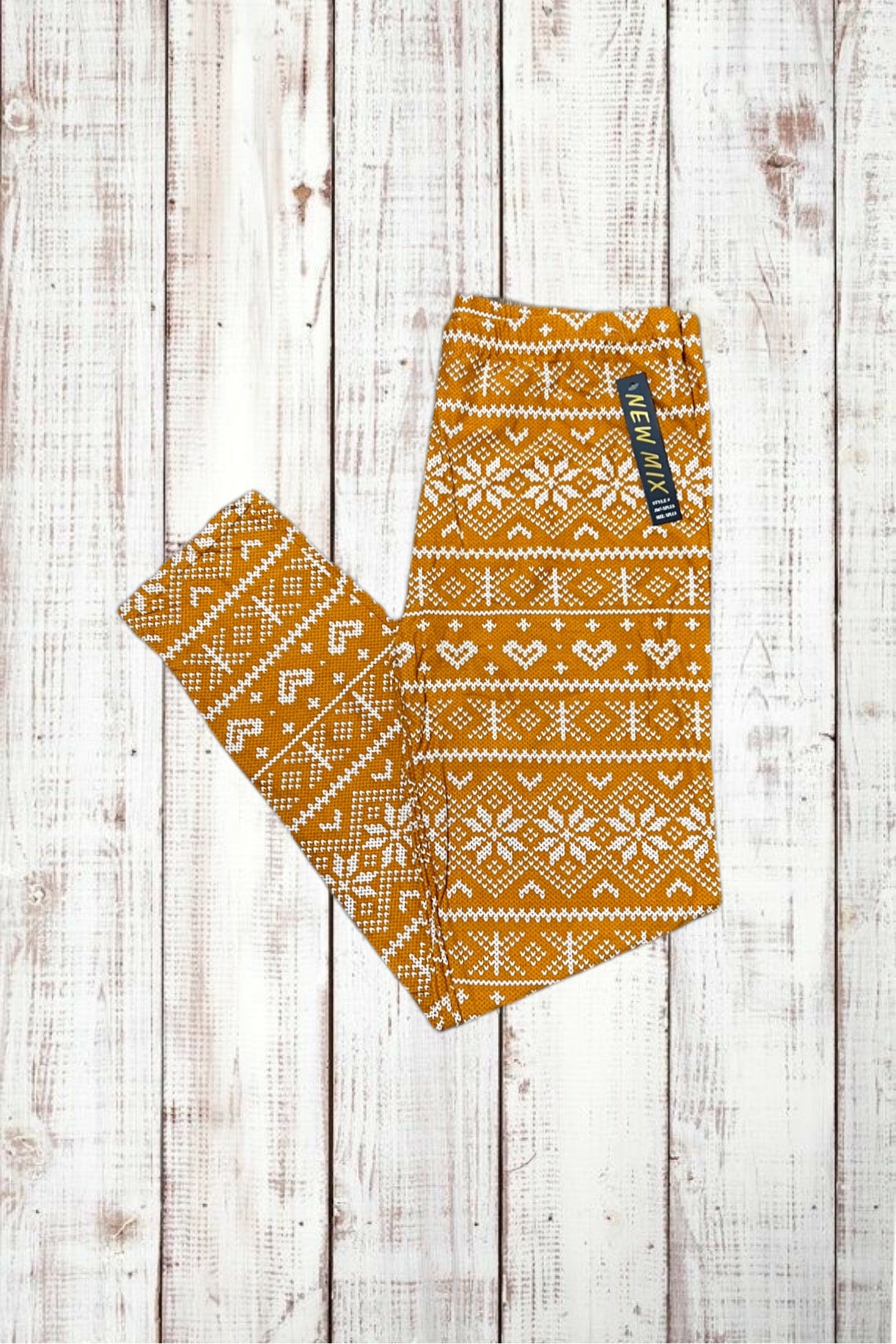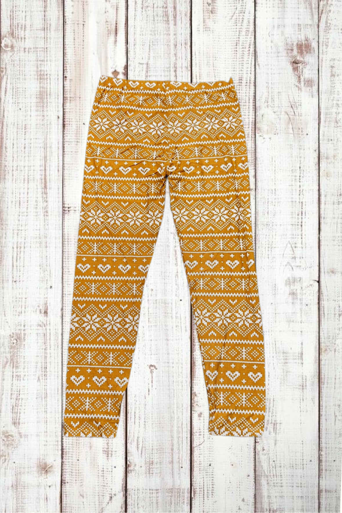 Buttery Soft Leggings - Holiday Mustard Yellow Fair Isle