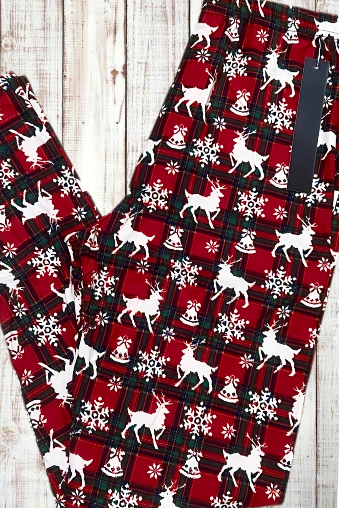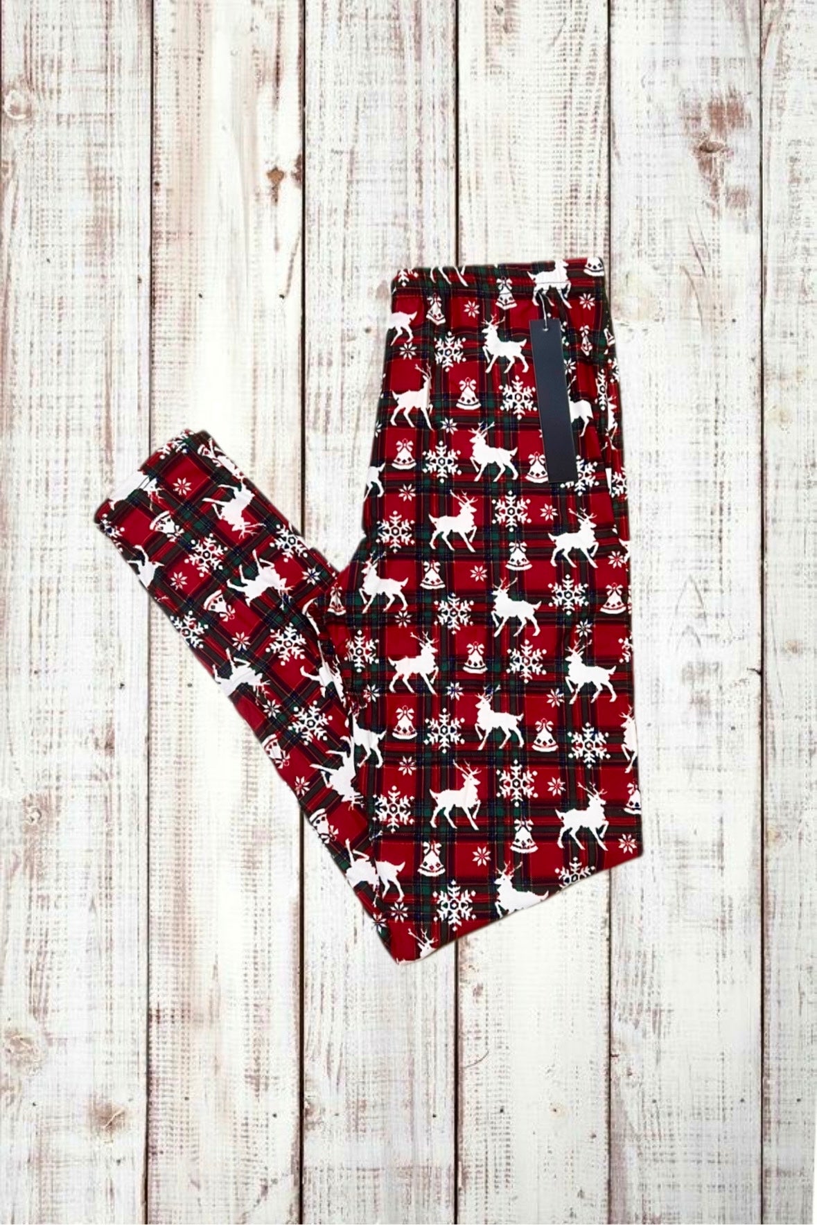 Buttery Soft Leggings - Reindeer Holiday Plaid