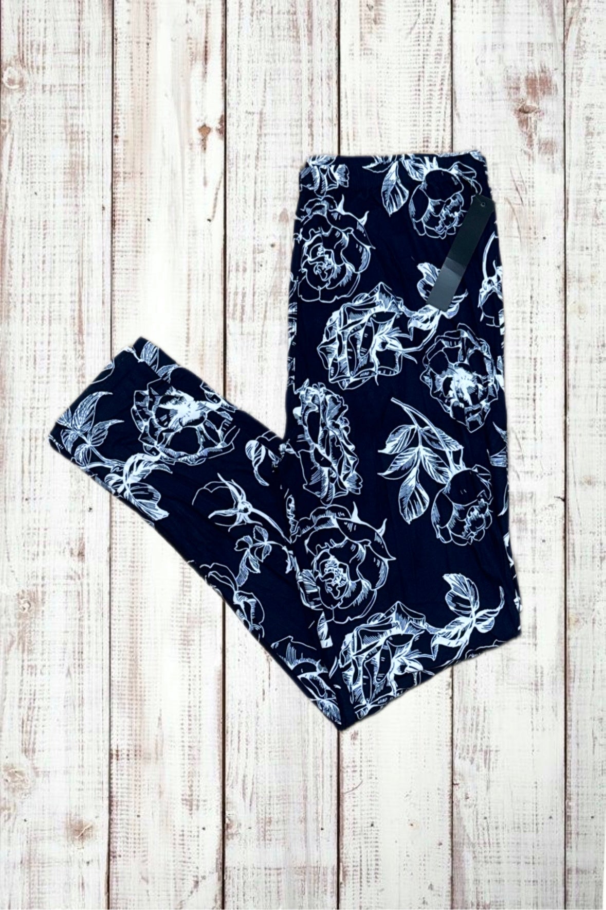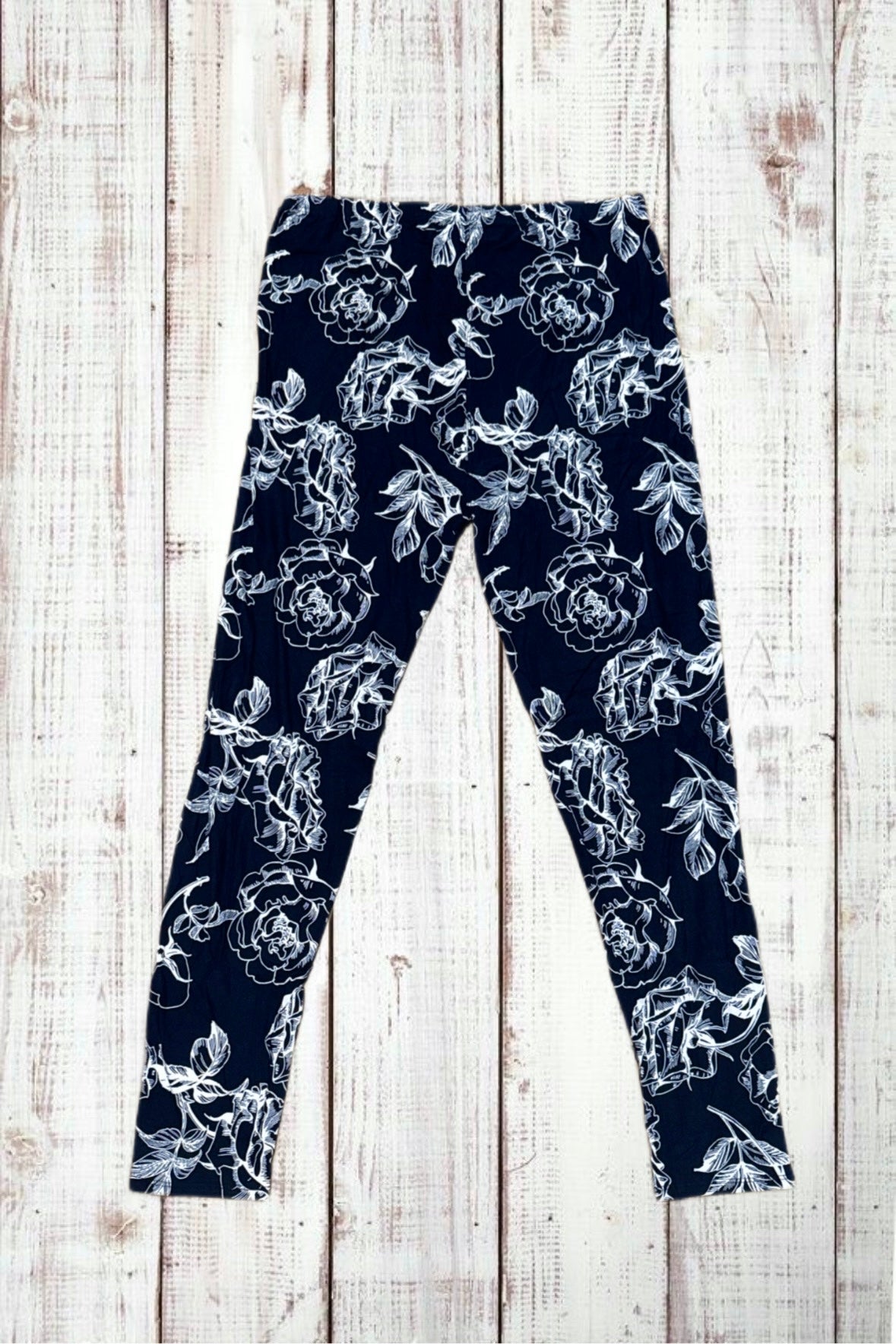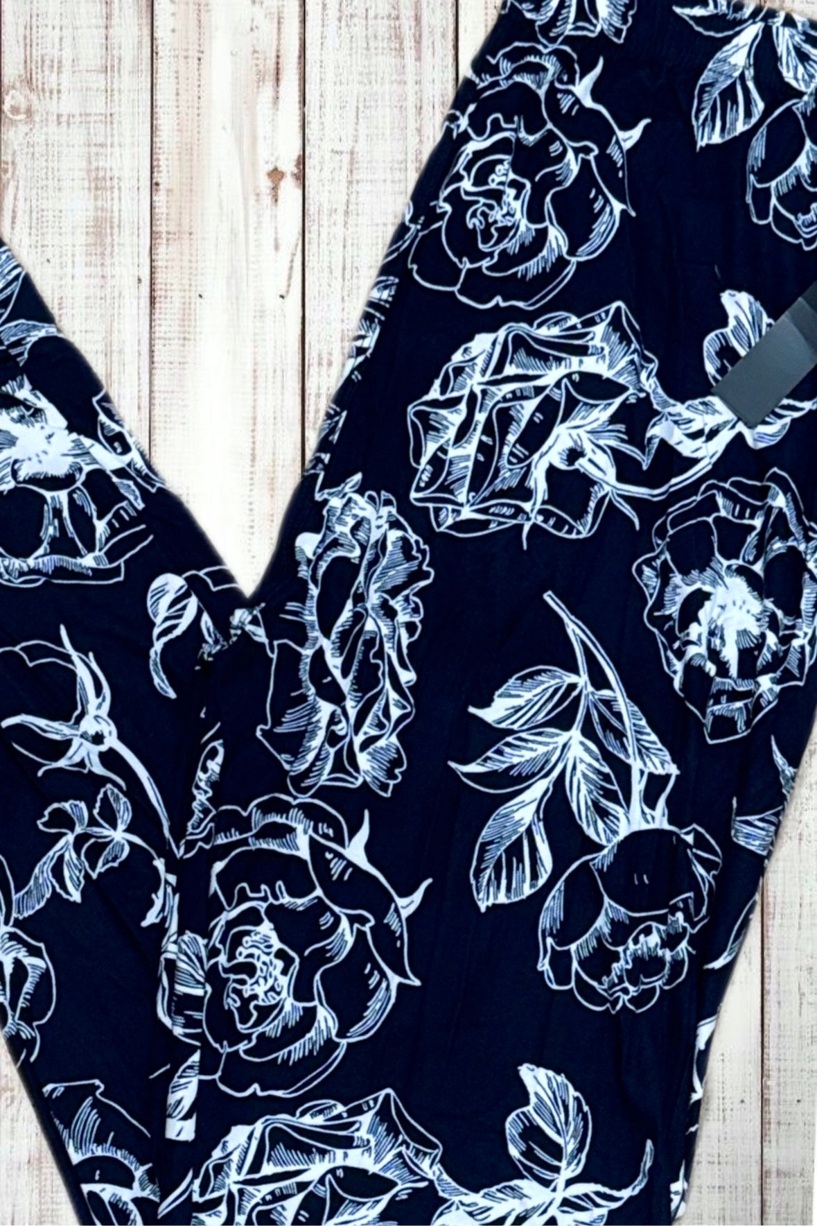 Buttery Soft Leggings - Deepest Navy & White Roses
