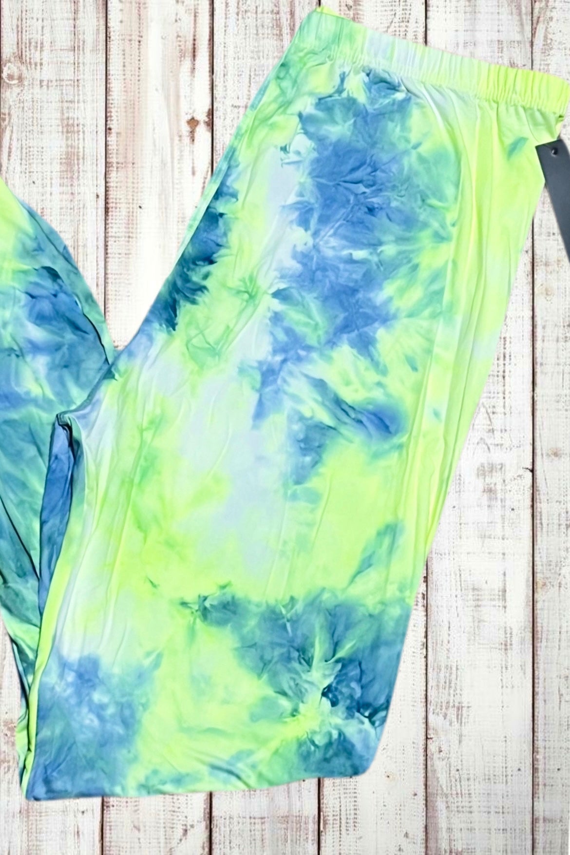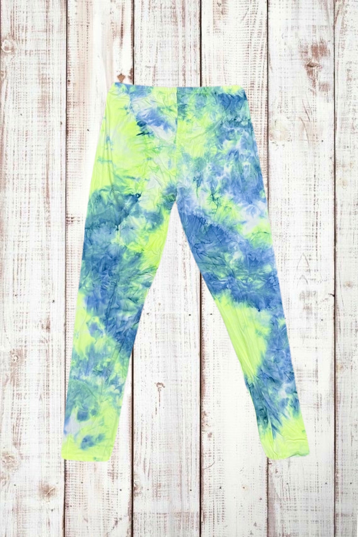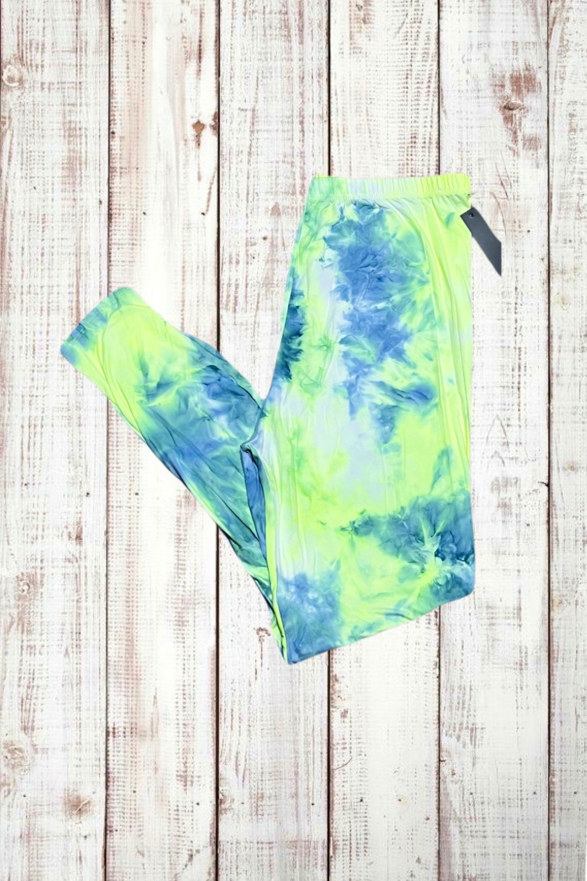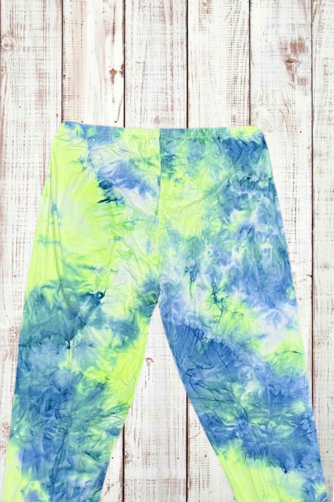 Buttery Soft Leggings - Tie Dye Neon Lime Green/Blue