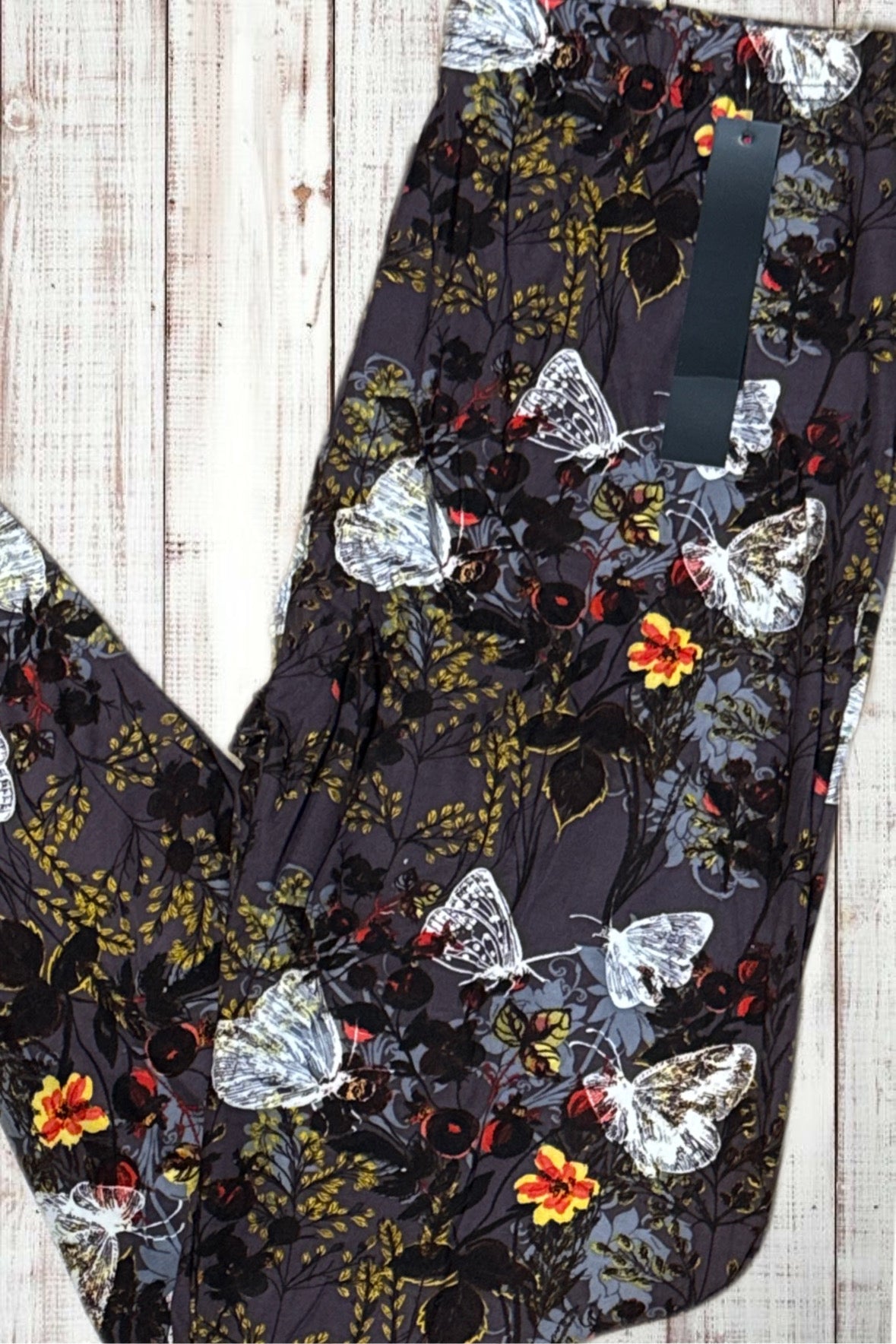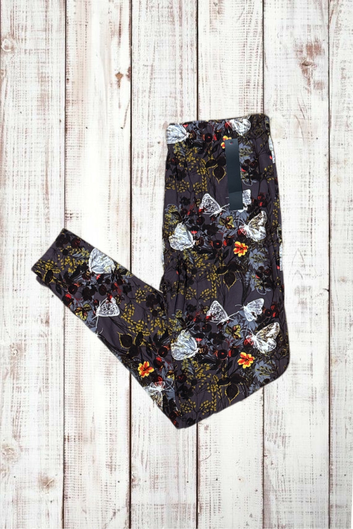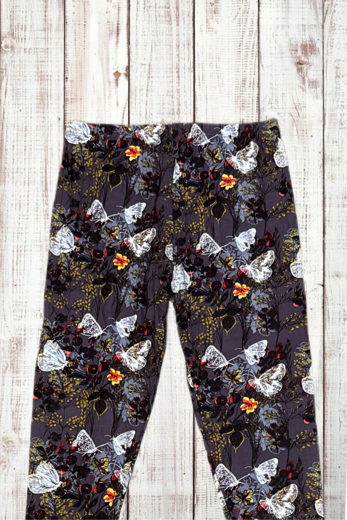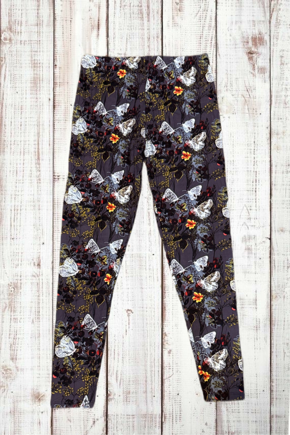 Buttery Soft Leggings - White Butterflies & Flowers