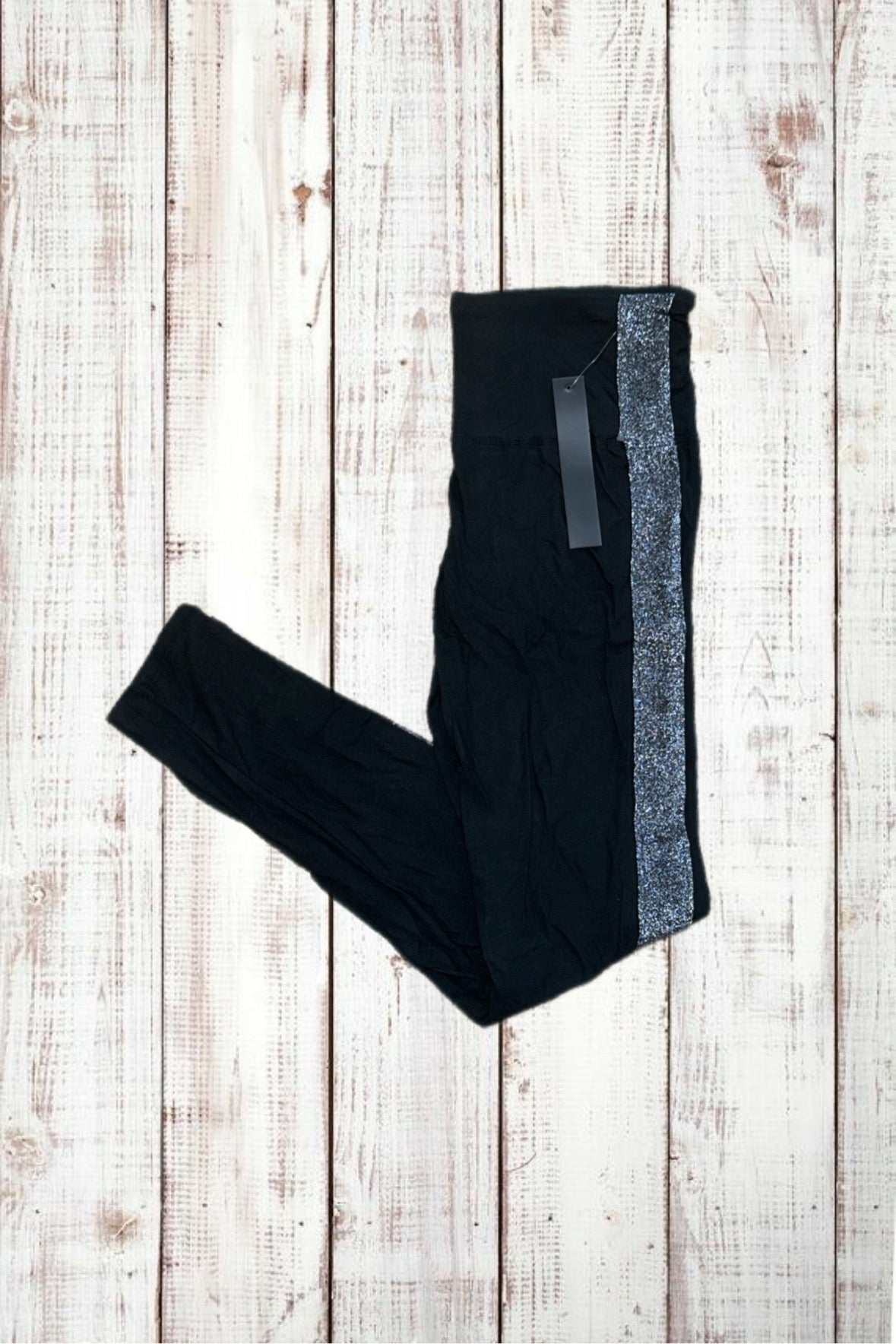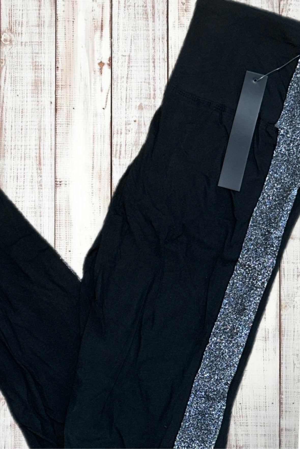 Buttery Soft Yoga Leggings - Black w/ Silver Stripe